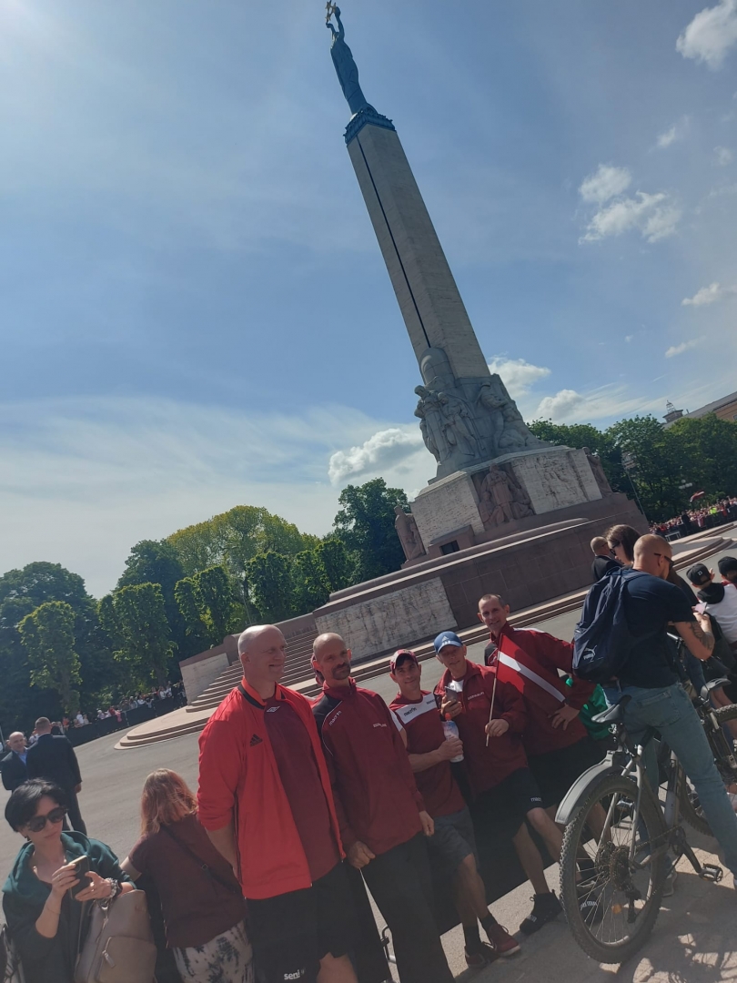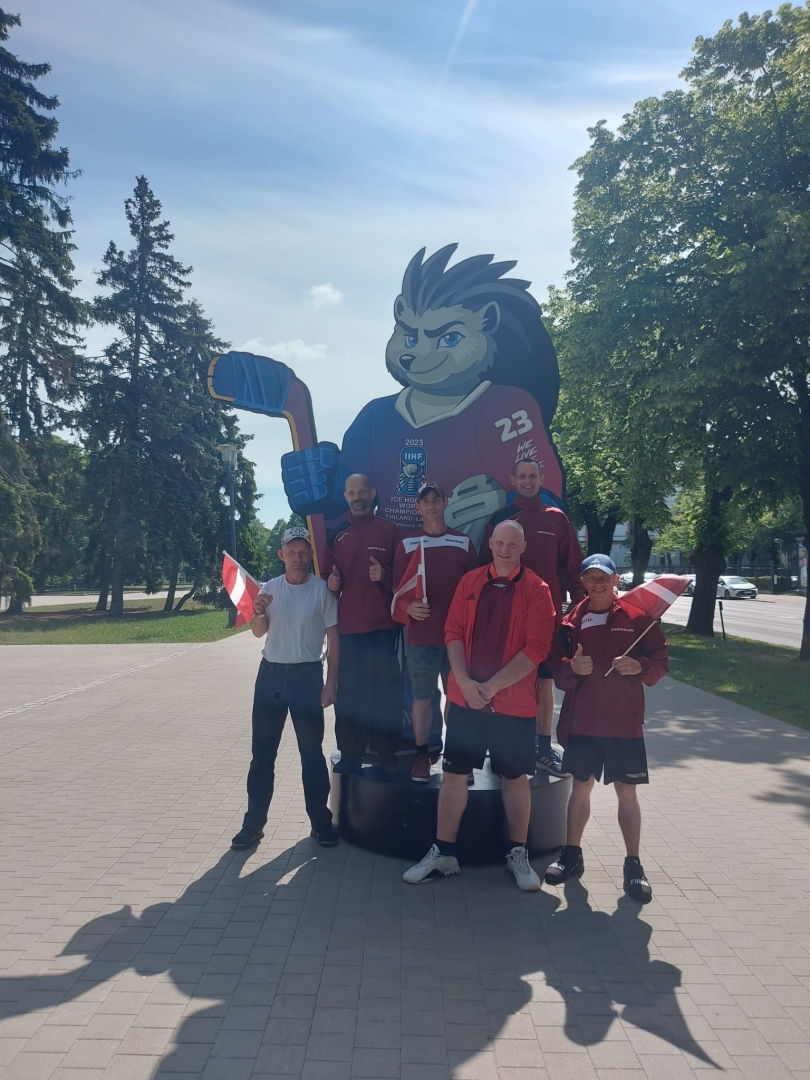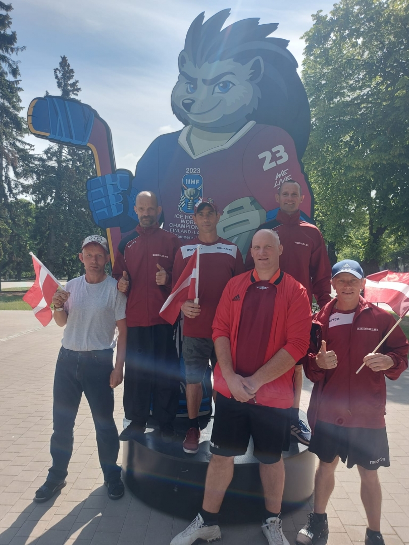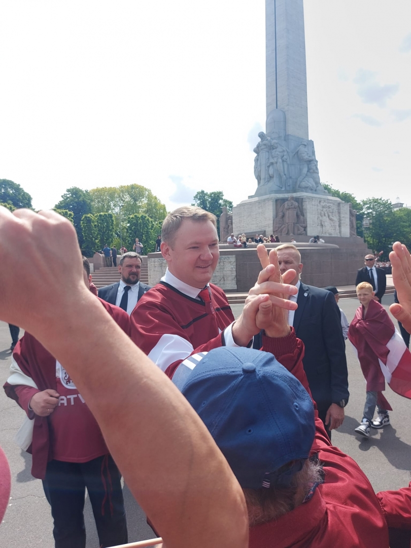 Filiāle "Ziedkalne" sagaida Latvijas hokejistus pie Brīvības pieminekļa